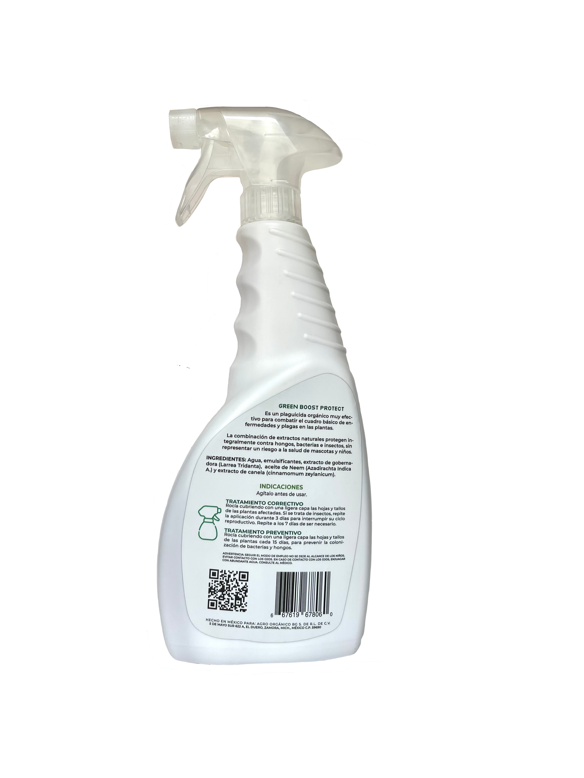 GREEN BOOST PROTECT es un plaguicida orgánico muy efectivo para combatir el cuadro básico de enfermedades y plagas en las plantas.