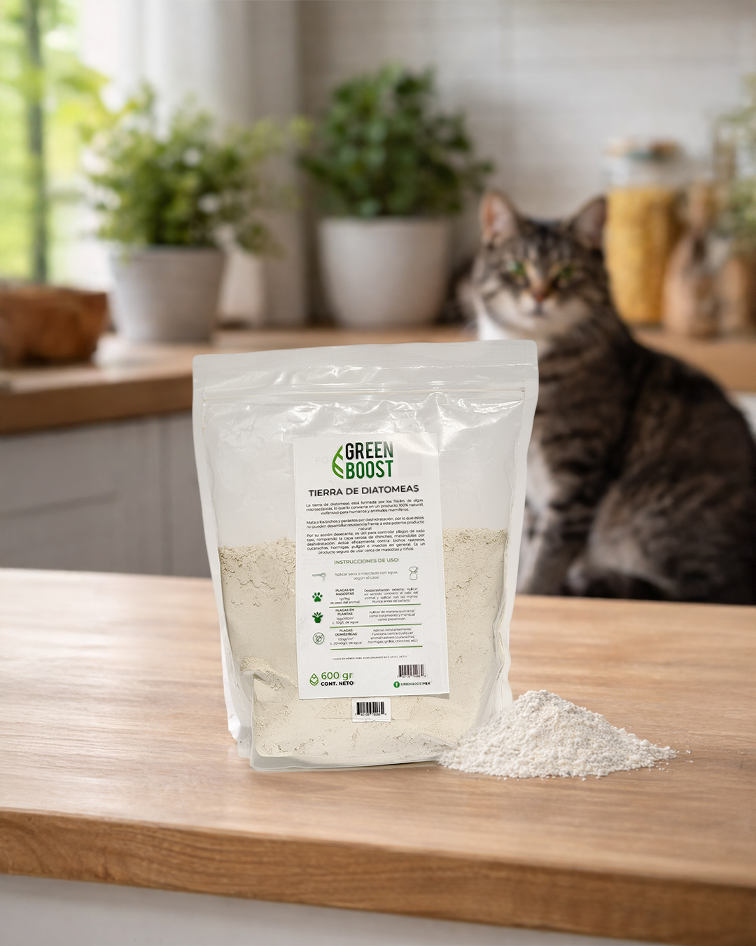 La tierra de diatomeas es un producto 100% natural, inofensivo para humanos y mascotas. Puede usarse en mascotas, casa y jardín. Mata a los bichos y parásitos por deshidratación, por lo que estos no pueden desarrollar resistencia frente a este potente producto natural. Si tienes un jardín en el que conviven animales y niños, este es el producto más adecuado para control de plagas.